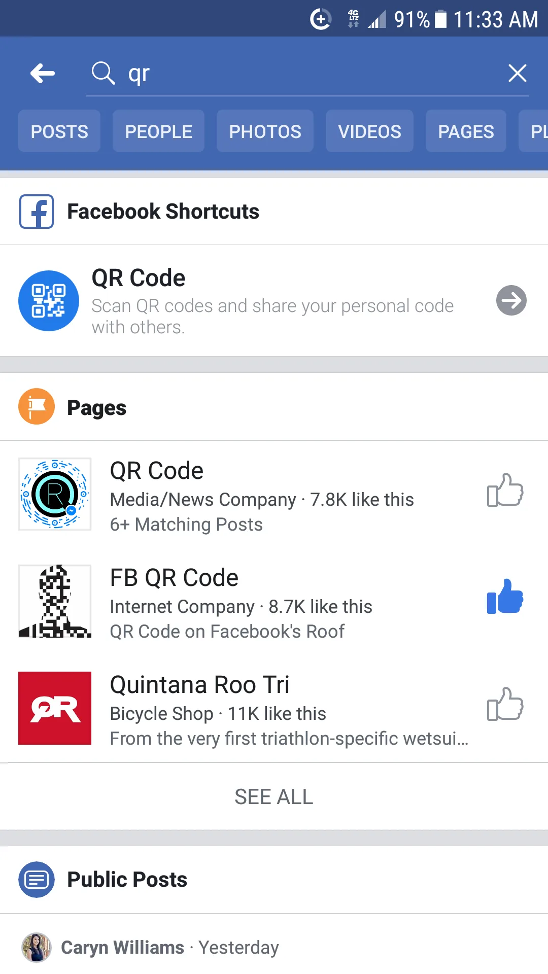 Yesterday after trying my hand at maybe 3 or 4 password guesses, good ol’ Facebook had my back, prompting me with a screen including an option to log in with my phone. From there, a QR code was shown on my desktop. I searched “qr” as directed and under “Facebook Shortcuts” was “QR Code.” No download of another app needed, just a quick click, scan of the QR code on my desktop, click of “allow login” from my phone and boom. In like Flynn! Thank you for making my life a little easier in the world of technology, Facebook. I figured I’d share the news for those who also have a plethora of passwords.