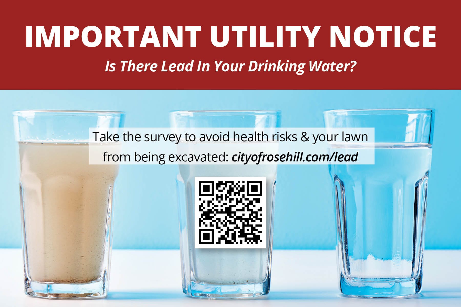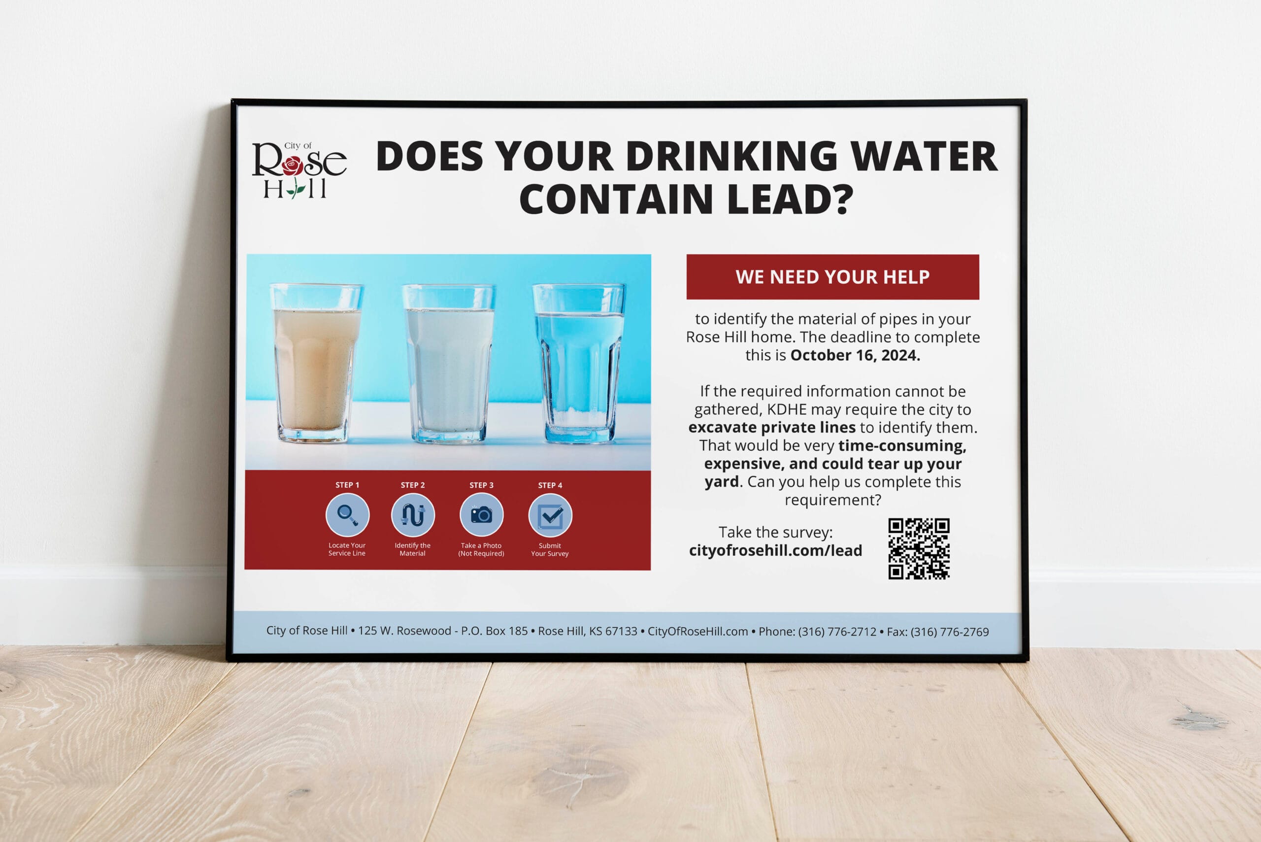 In 2024, the Kansas Department of Health and Environment (KDHE) required water suppliers to submit surveys to identify and remove all lead pipes in the drinking water system. The City of Rose Hill needed to raise awareness of the importance of taking the survey and to provide an easy way for citizens to complete it.